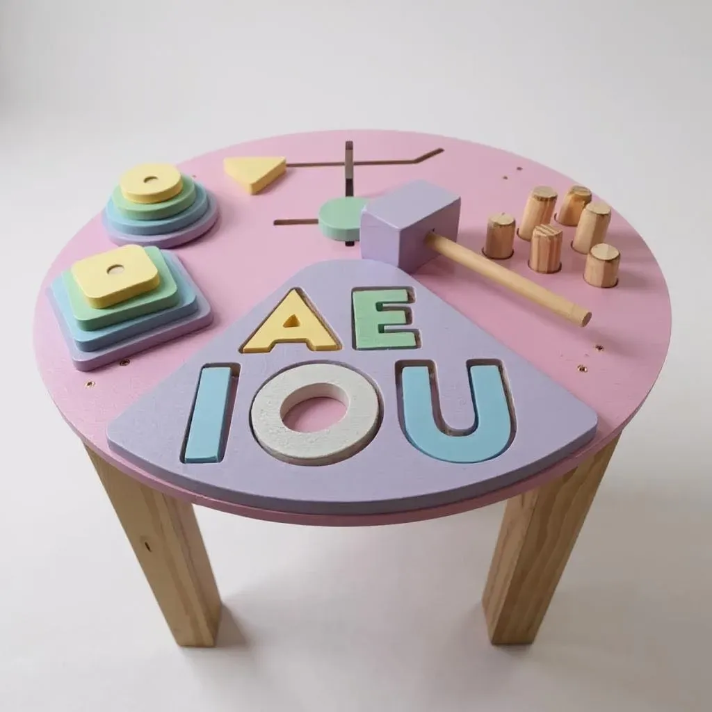 Mesa didáctica de 50 cm de diámetro y 38 cm de alto, ideal para actividades educativas y creativas. Su tamaño compacto la hace perfecta para espacios reducidos. Fabricada con materiales de alta calidad, esta mesa es versátil y resistente, ideal para niños y niñas en Argentina.